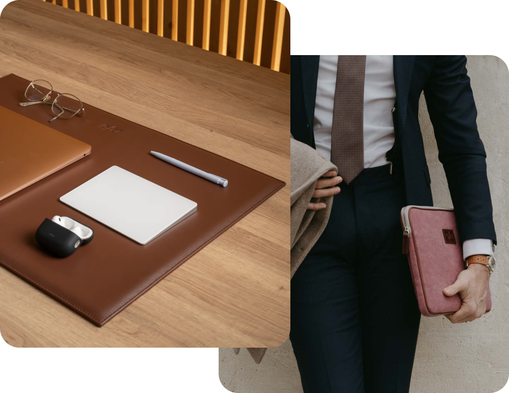 Por supuesto desarrollamos el logo del cliente, sobre la piel o sobre la propia tela. También grabamos las iniciales de cada destinatario final si el cliente quiere hacer un regalo mucho más personal.